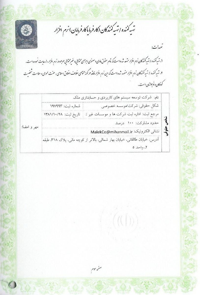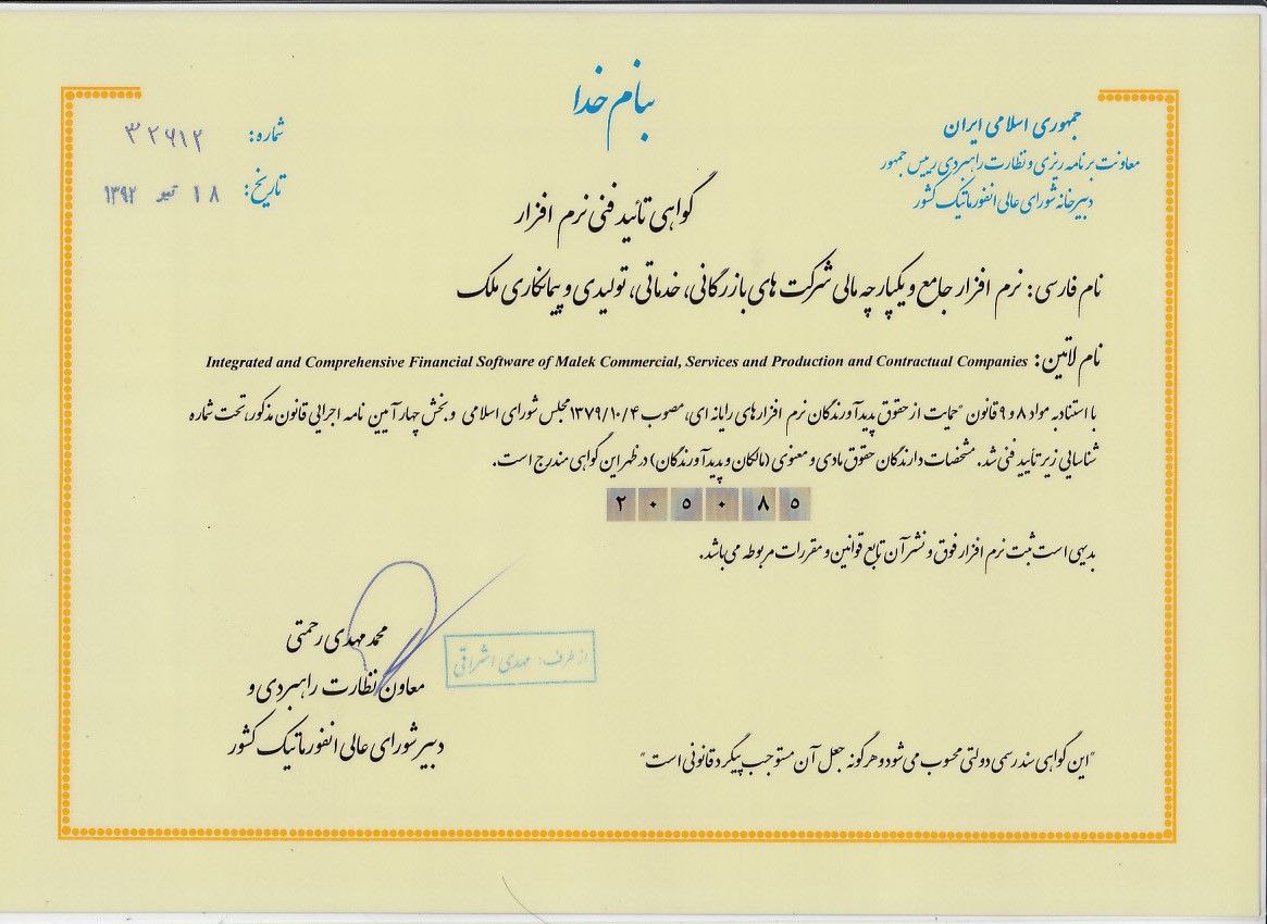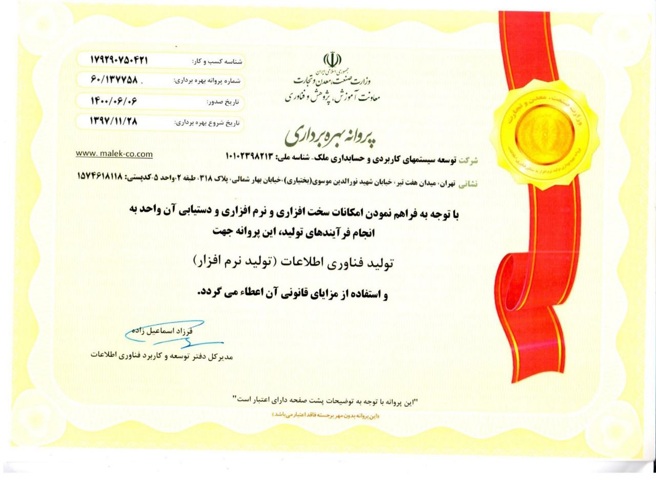 شرکت ملک تولید کننده نرم افزارهای حسابداری ، سفارشی و کاربردی هستیم که به کسب و کارها کمک میکند فرآیندهای مالی و مدیریتی خود را به صورت دقیق و کارآمد انجام دهند