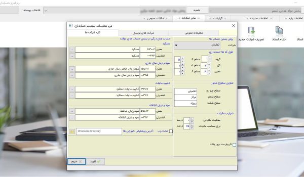 - امکان تنظيم طول کد حسابها در سطح گروه، کل، معين و سطح 4و5و6